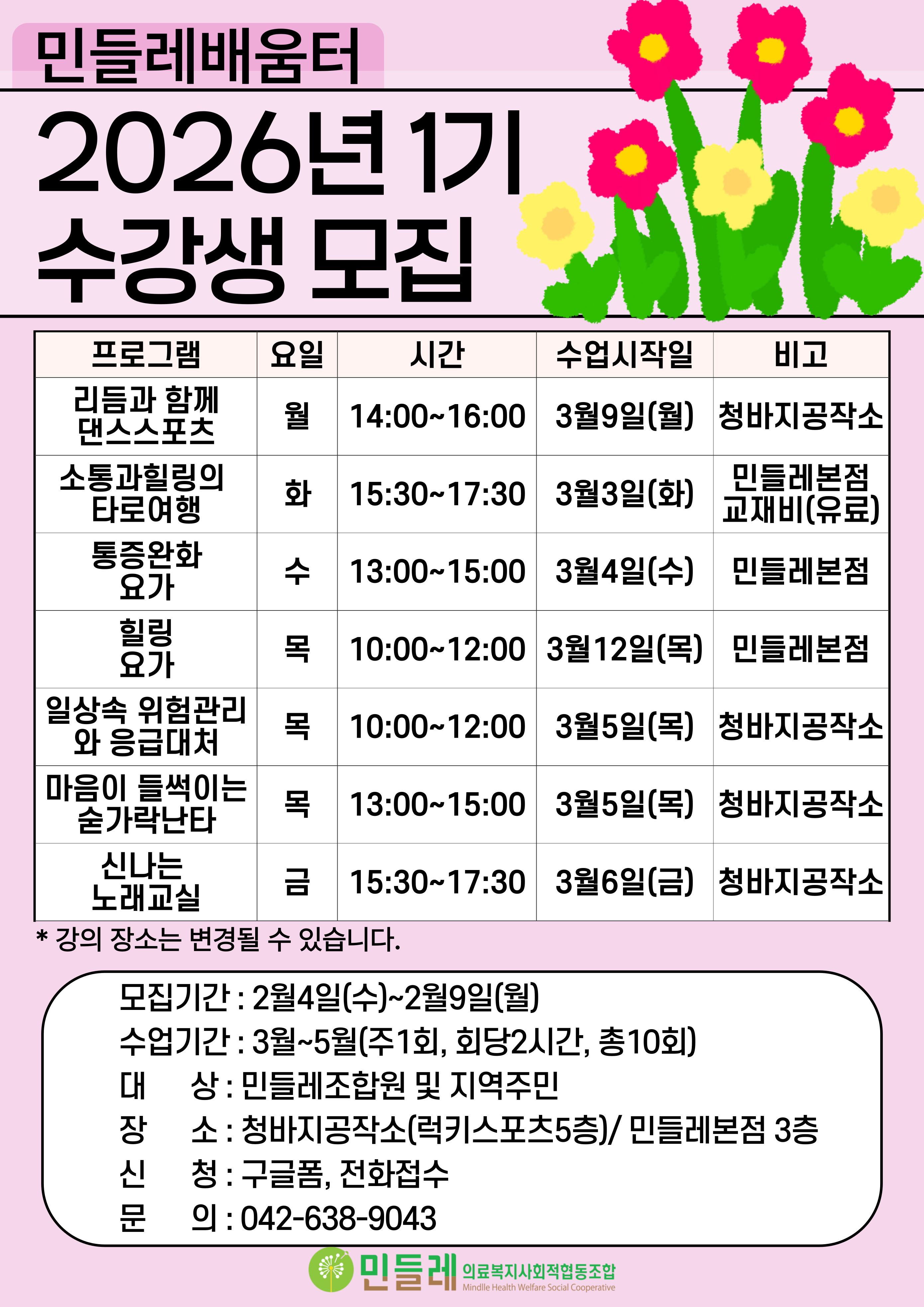 민들레배움터 2026년 1기 수강생 모집