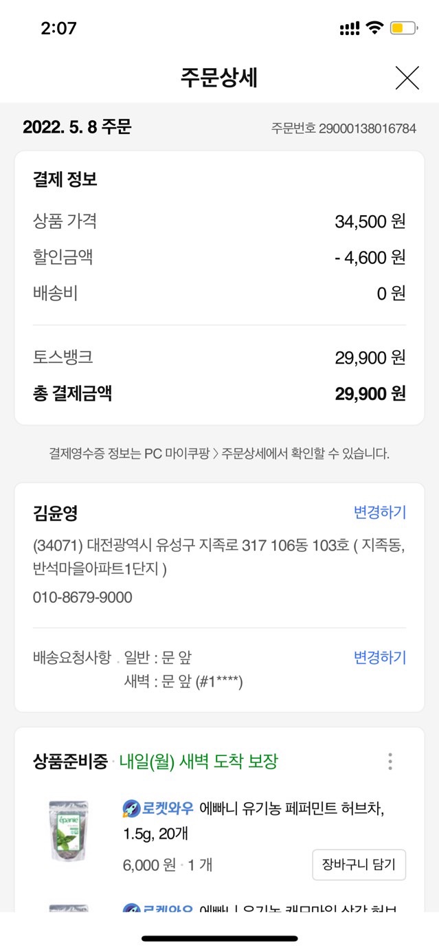쿠팡/2022.05.08/ 다과비/ 29,900원