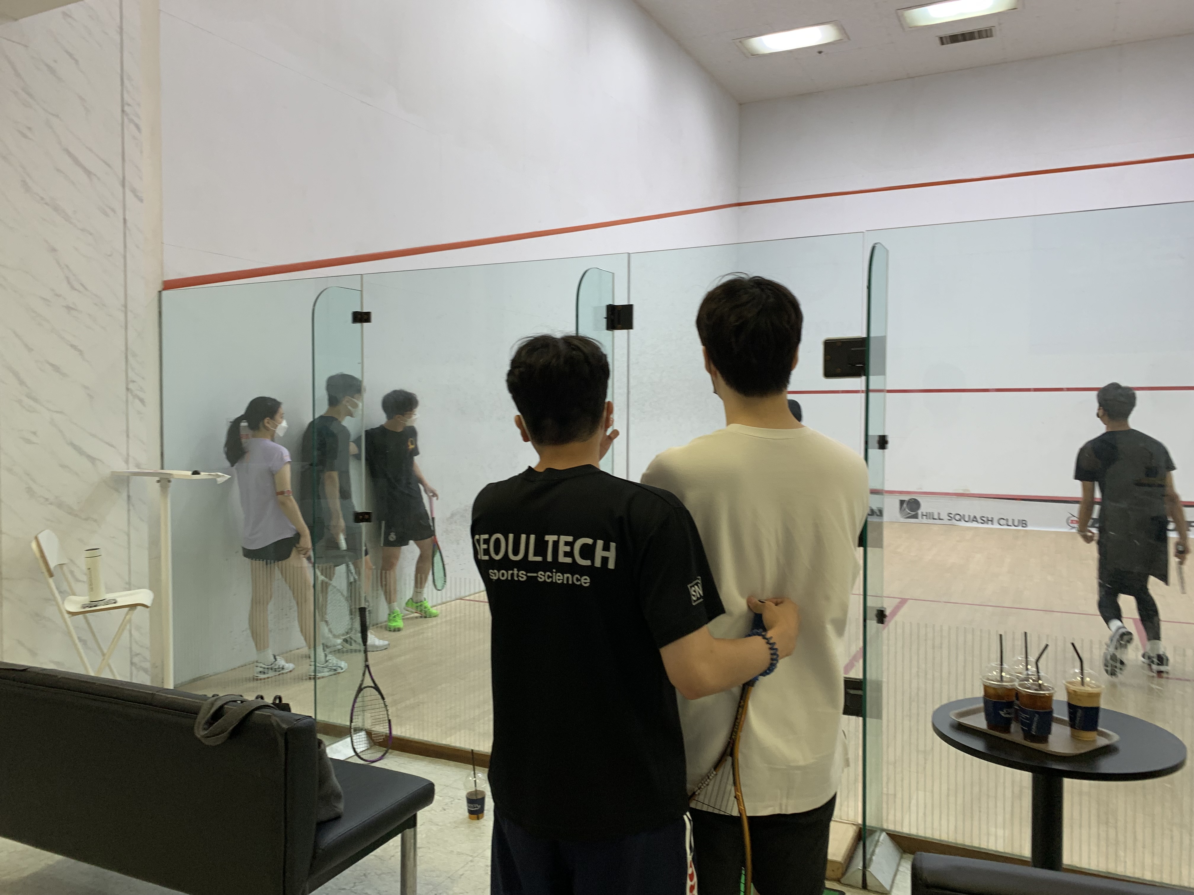 추운날씨로 인해 실내 스포츠'스쿼시' 운동 진행