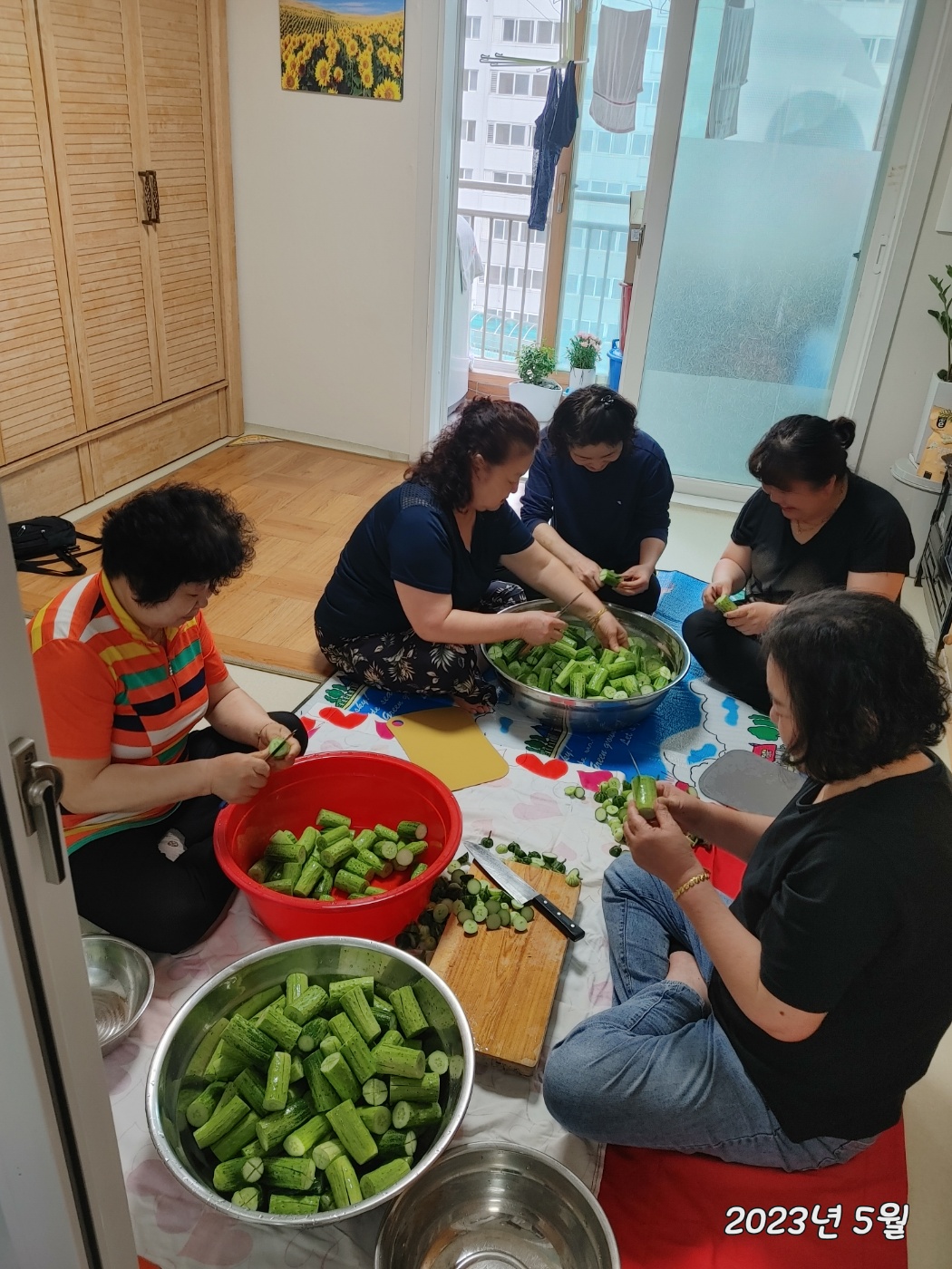 요즘 제철인 맛난 오이소박이를 담았습니다. 복도에서 부터 오이의 향긋함이 진동했던 날이었습니다. 재료사서 다듬고 마지막 분배까지 모두 같이 해주셨습니다. 간식도 준비해서 먹구요. 비가 와서 부침개도 같이 해서 먹었습니다. 오랫만에 많은 인원이 모여서 활동하는 하루였습니다. 모두 모두 가치했유 였답니다. 다음달 활동은 함께 걷기와 밑반찬 만들기로 하였습니다.^^