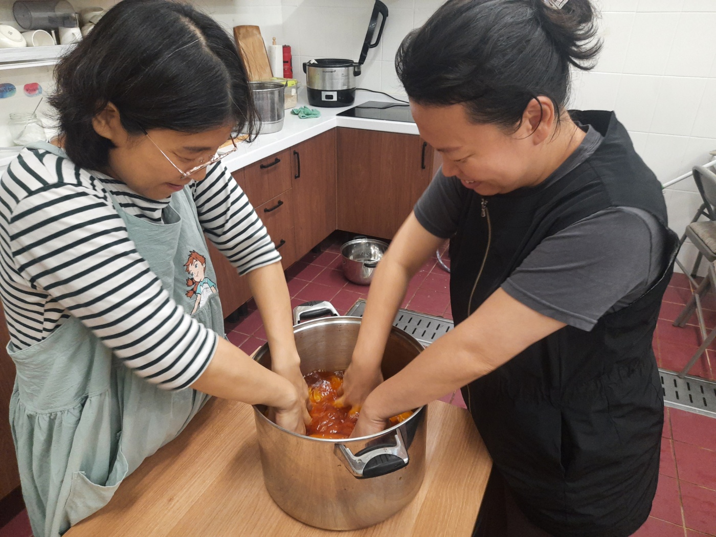 천연염색 - 치자염색 발도르프학교 수공예 선생님을 초빙하여 천연염색 모임을 가짐. 각자 염색하고 싶은 옷이나 가방을 준비하여 염색 오랜 시간 손으로 주무르고, 말리는 작업을 하며 이야기를 나눔