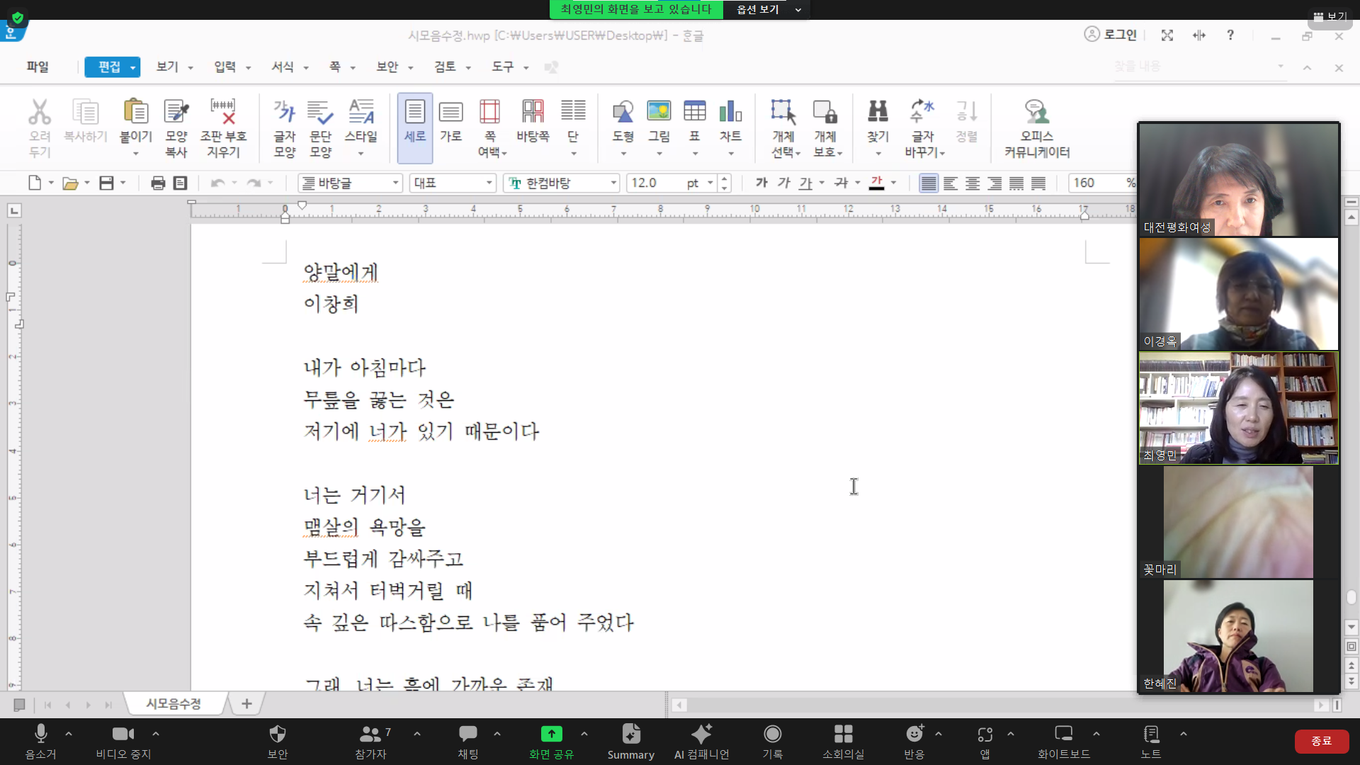 최영민, 이경옥, 한혜진, 최성자, 전혜련